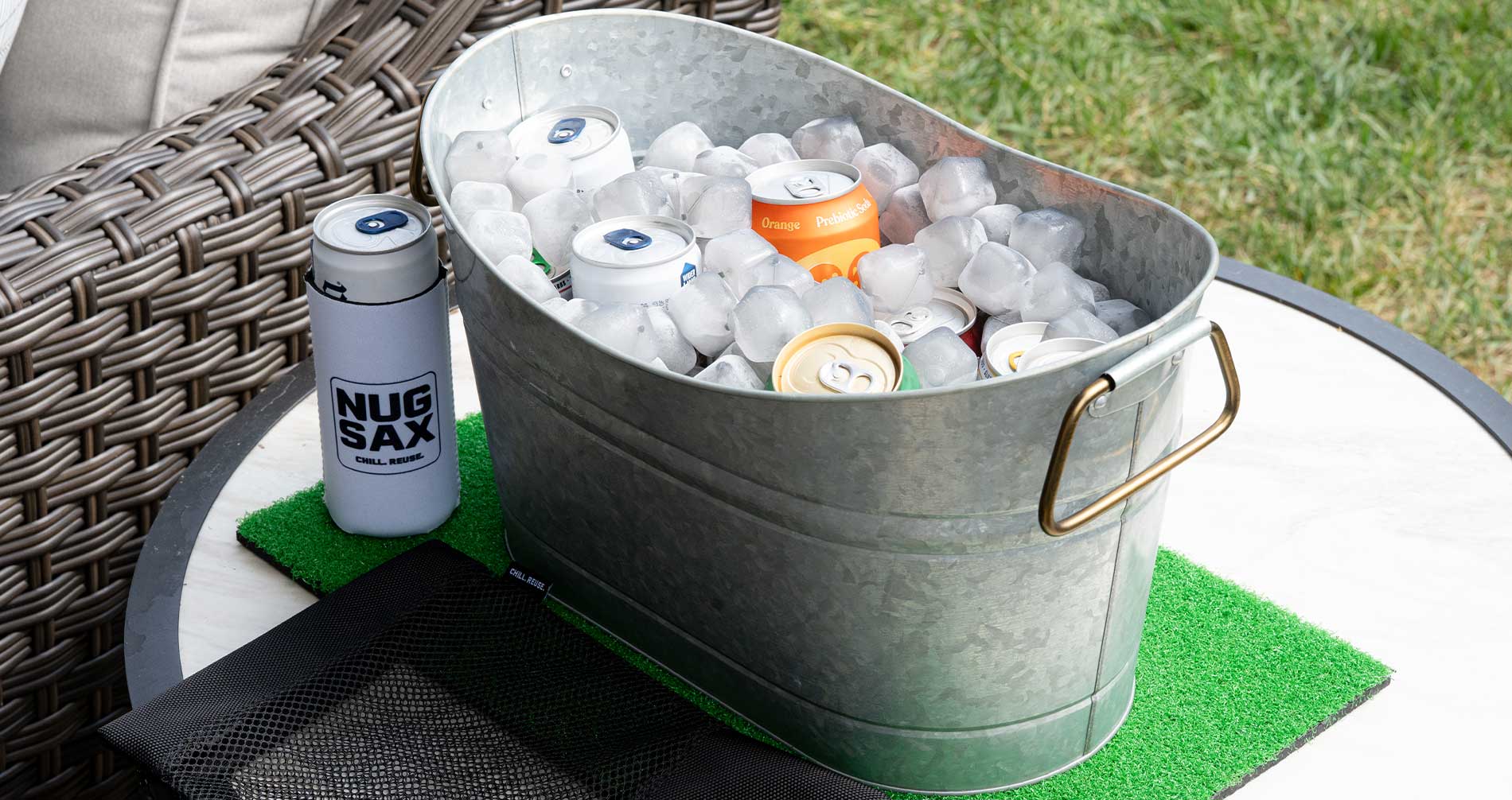 Nugsax are reusable, bagged ice packs designed to keep your drinks ice-cold without the mess of melting ice for up to 24 hours. Each Nugsax bag is full of reusable ice cubes. Each cube is wrapped in BPA Free plastic and filled with distilled water and then sealed. Built to be frozen and refrozen again and again. No leaks, no waste, no soggy gear—just pure chill whenever you need it.